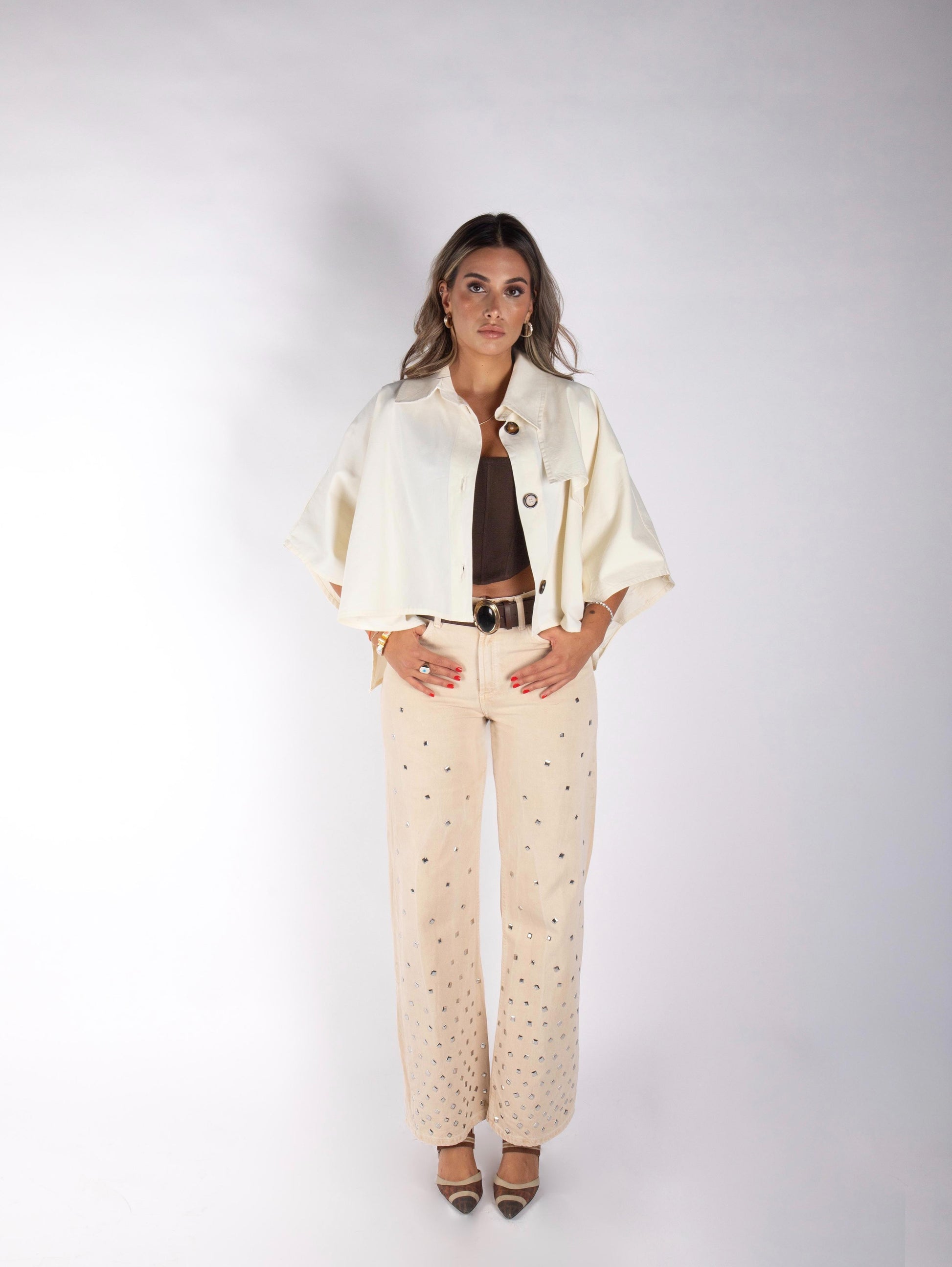 Length: Hits at the waistline for a modern, architectural proportion