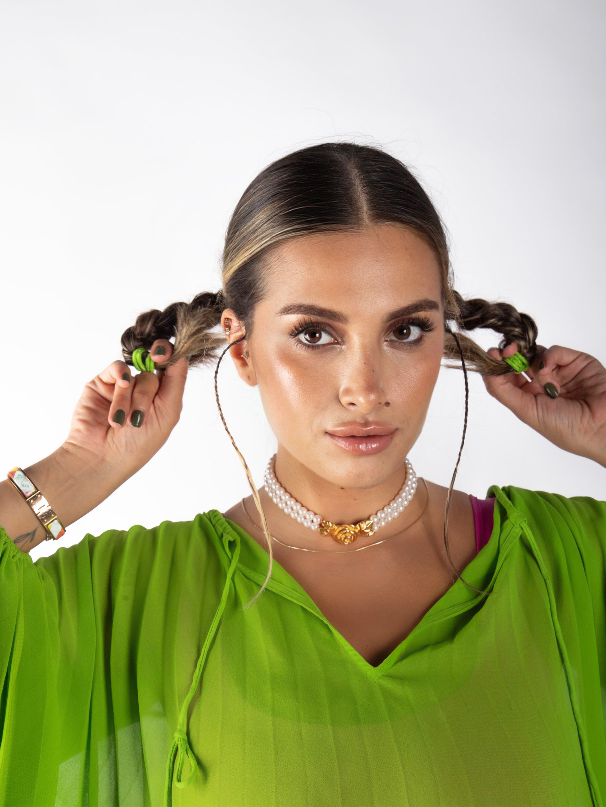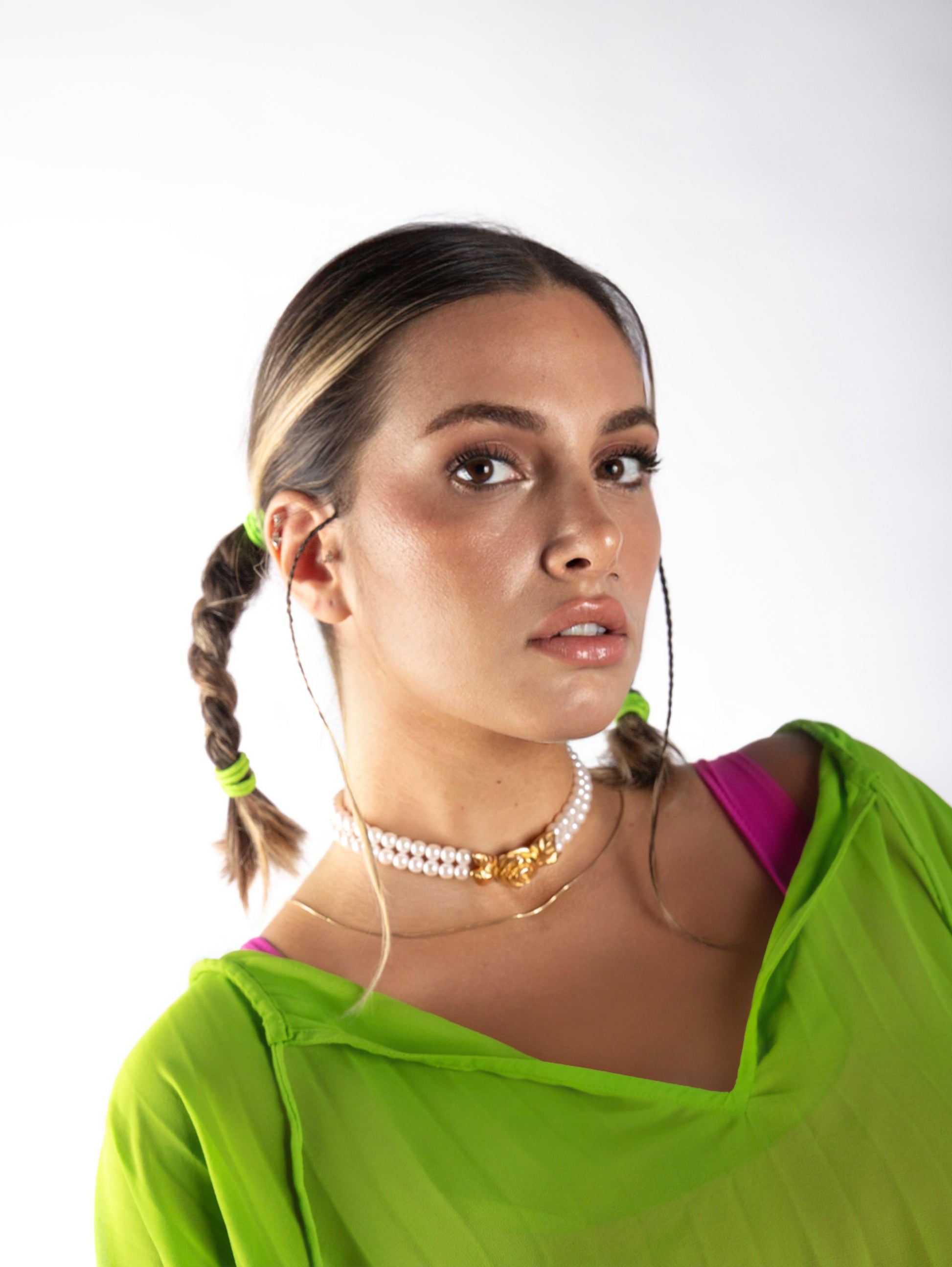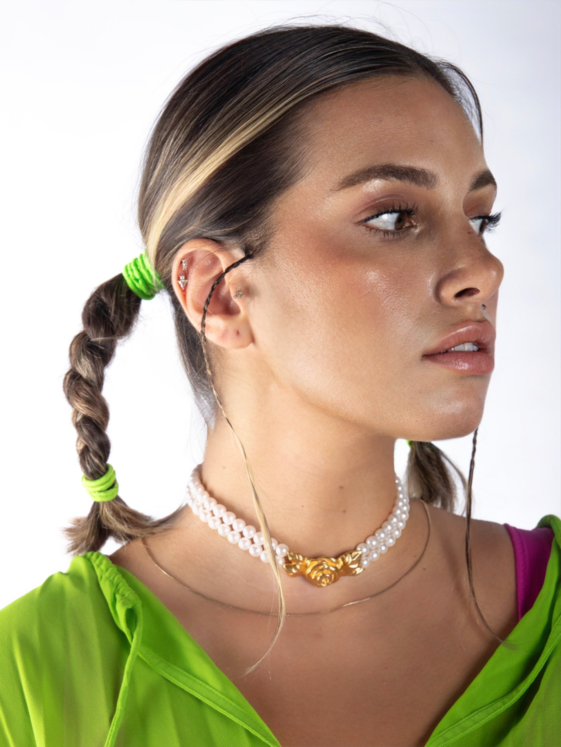 Givenchy'nin 1980'ler-90'lar dönemine ait nadir bir koleksiyon parçası olan bu inci gerdanlık, markanın zamansız zarafetini ve barok sofistikeliğini yansıtıyor. Parlak suni incilerle süslenmiş ve imzalı yaldızlı çiçek tokasıyla tamamlanan bu kolye, markanın moda mirasını tanımlayan gösterişli kostüm mücevher kodlarını yansıtıyor.