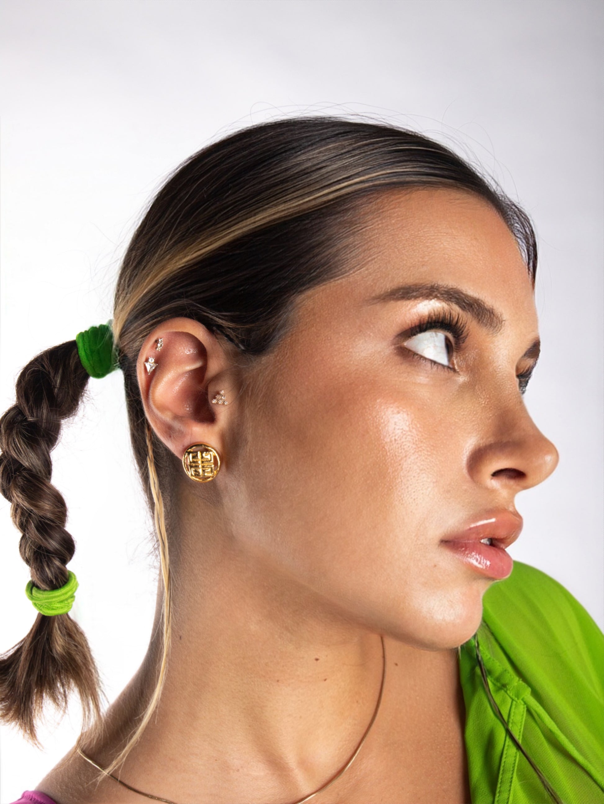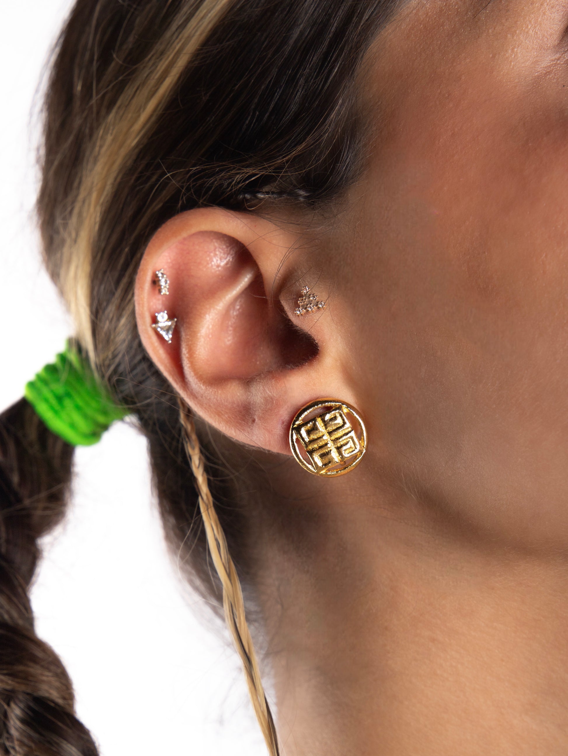 1980'ler Maison Givenchy koleksiyonundan bu vintage küpeler, markanın ikonik monogramının kalın dairesel bir madalyon üzerine işlenmiş halini taşıyor. Altın kaplama ile üretilen küpeler, zamansız Paris şıklığını iddialı bir zarafetle birleştiriyor.