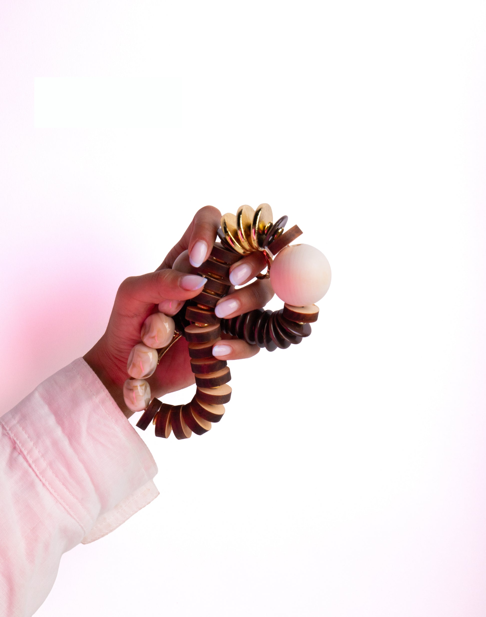 Heykelsi ahşap diskler, ışıltılı fildişi reçine ve parlayan altın kaplama detaylar ritmik bir uyumla kenetleniyor; merkezdeki tek bir küre ise varlığını güçlü bir şekilde hissettiriyor. Tasarım, gölge ve yansıma arasında oynayarak hem modernist geometrinin hem de kadim ritüel objelerinin ruhunu çağrıştırıyor.
